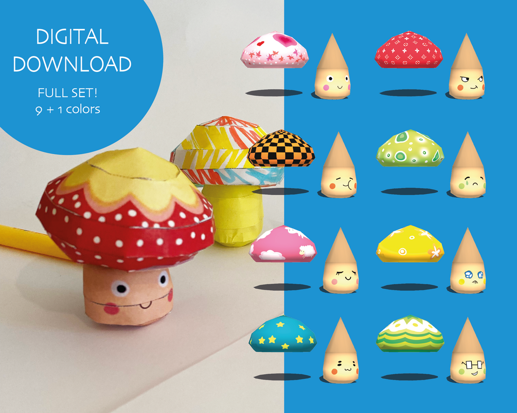Mushroom papercraft FULL PACK 11 variations | Instant PDF Download