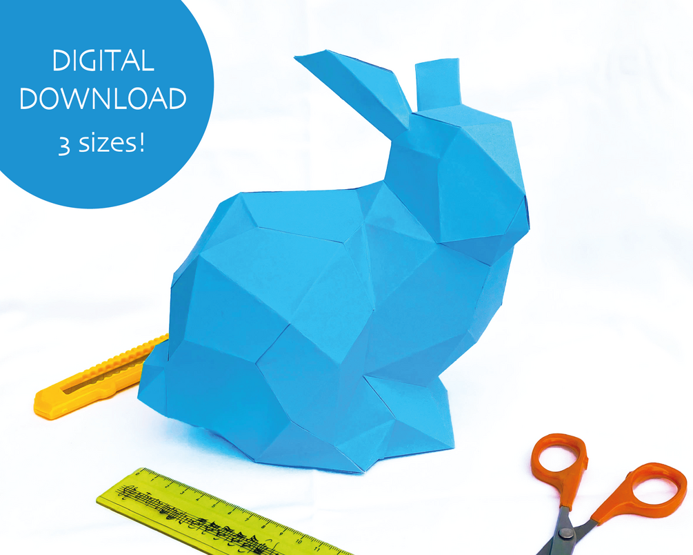Lowpoly 3D Stanford bunny papercraft model puzzle pattern DIY decor pepakura | Instant PDF download 3 sizes
