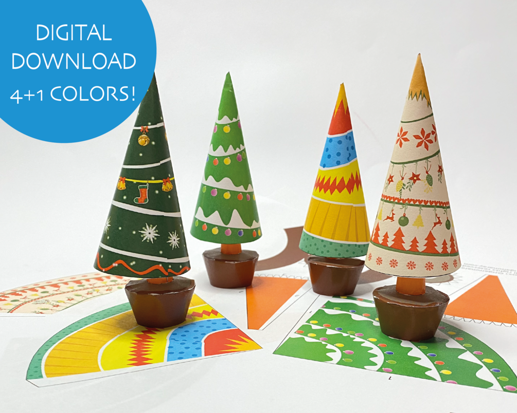 Christmas trees decoration craft kit // DIY dollhouse xmas tree // Christmas craft digital download | Instant PDF download